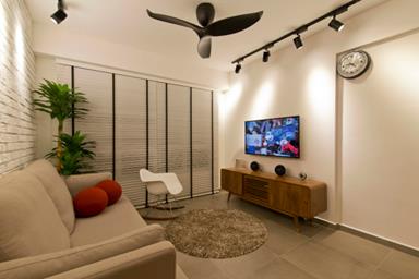 Cerused wood furniture and surfaces and bare pipes scurrying overhead flirt with an otherwise pared-down interior made out of tidy tiled floors and clean white-kissed walls, adding a much-needed dollop of masculinity befitting this cosy bachelor pad. The real highlight, however, is the balcony carved out of the pre-existing living room. Here, old-school louvre windows push out to offer operations manager Nyik Hew a panoramic view of the neighbourhood while he sips his cuppa and people-watches.