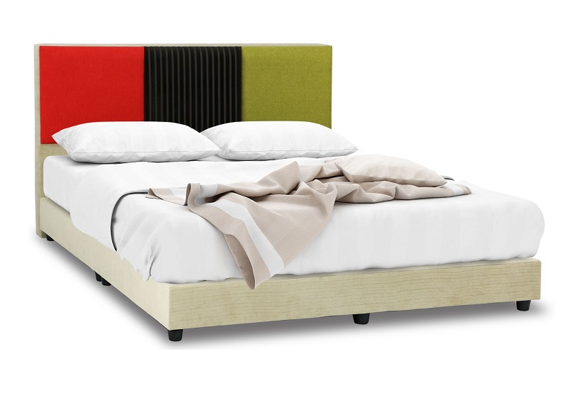 We love the unique headboard on the Herman fabric bed frame; those three coloured blocks give off a pop-retro feel. Get this bed frame as both sleeping space and a statement piece in your bedroom! Suitable for mattresses of up to 25cm high. Available in both Queen and King sizes.