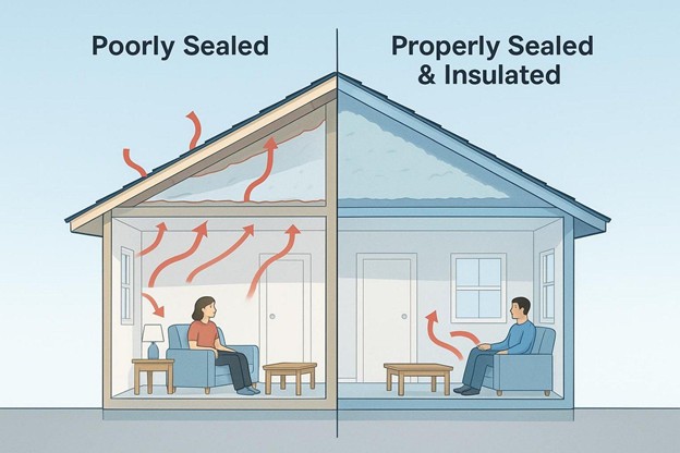 insulation and exterior seals. Good insulation in the attic and walls keeps
