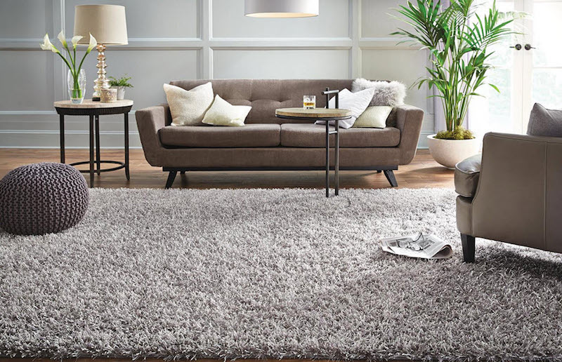 You may define seating areas using rugs. One common mistake is for people to use area rugs that are too small. Keep in mind that all of the furniture has to sit on the carpet comfortably. If you don't have enough space, make sure that the front legs of any large upholstered pieces are placed on the rug.
