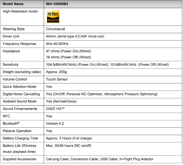- WH-1000XM3 Pre-order dates – 6th September – 19th September 2018 (in conjunction with COMEX