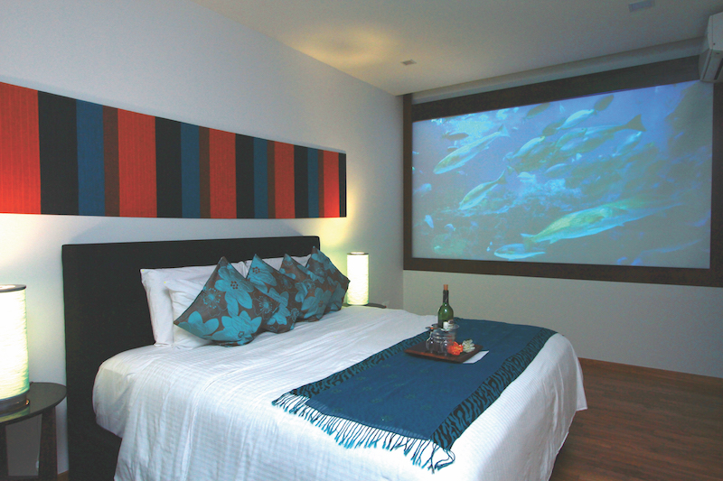 WE LOVE: Fancy waking up to an aquarium of underwater creatures tonight, and a landscape of beautiful sloping hills the next? Featuring a virtual portal that has the ability to take you (figuratively, of course) anywhere across the globe, this breathtaking room proved Nic & Wes Builders’ knack for the extraordinary.